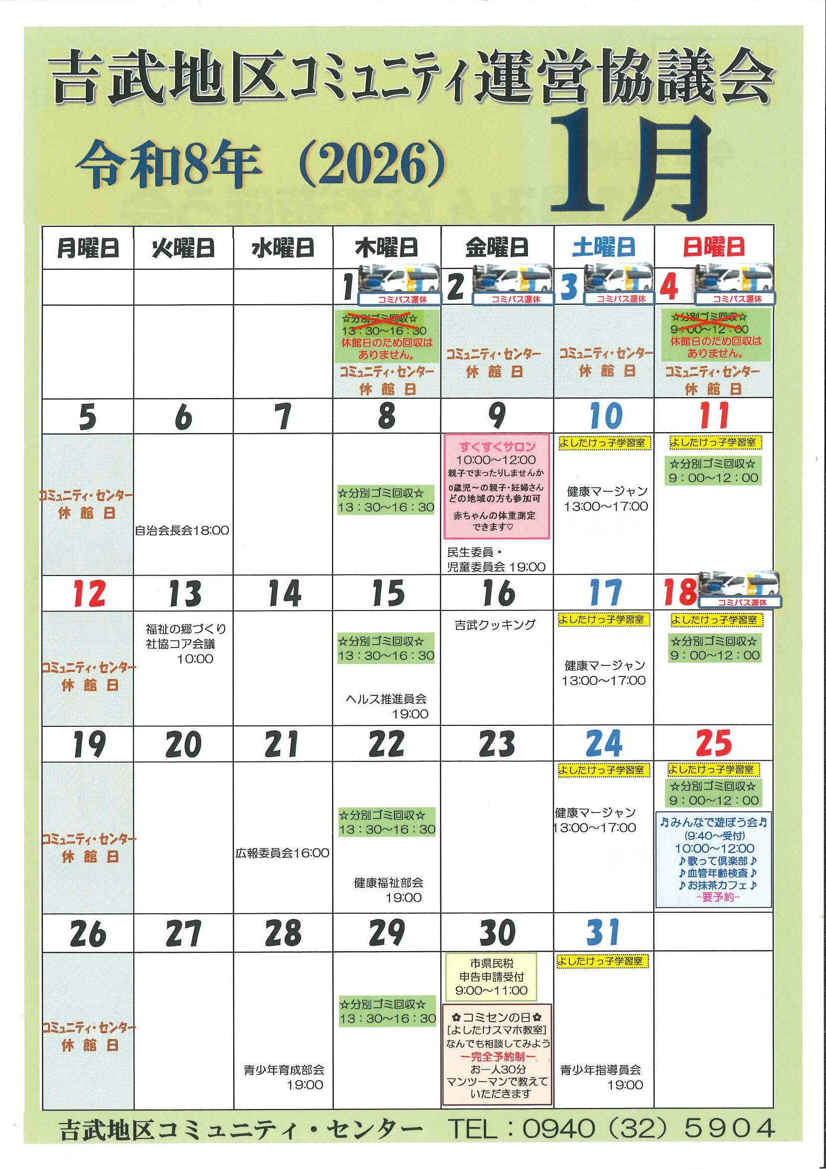 2026年1月 よしたけカレンダー